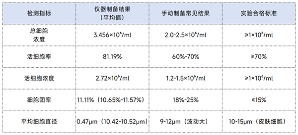 實驗結果也印證了這一點:儀器制備的懸液濁度僅 0.89.細胞平均直徑 10.52μm(符合皮膚細胞正常范圍),后續做流式檢測時,雜質干擾信號比手動法低了 18%。
