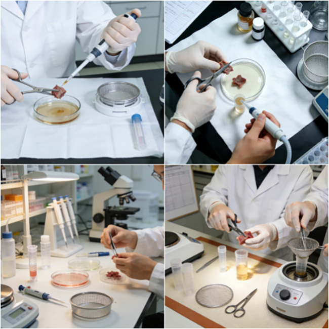 終止過濾:70μm 濾網過濾消化液,按 1:1 比例加入終止液終止酶解;