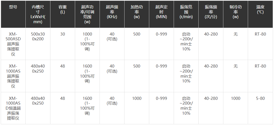 XM-500ASD超聲振蕩提取儀、XM-1000AS超聲振蕩提取儀、XM-1000ASD恒溫超聲振蕩提取儀